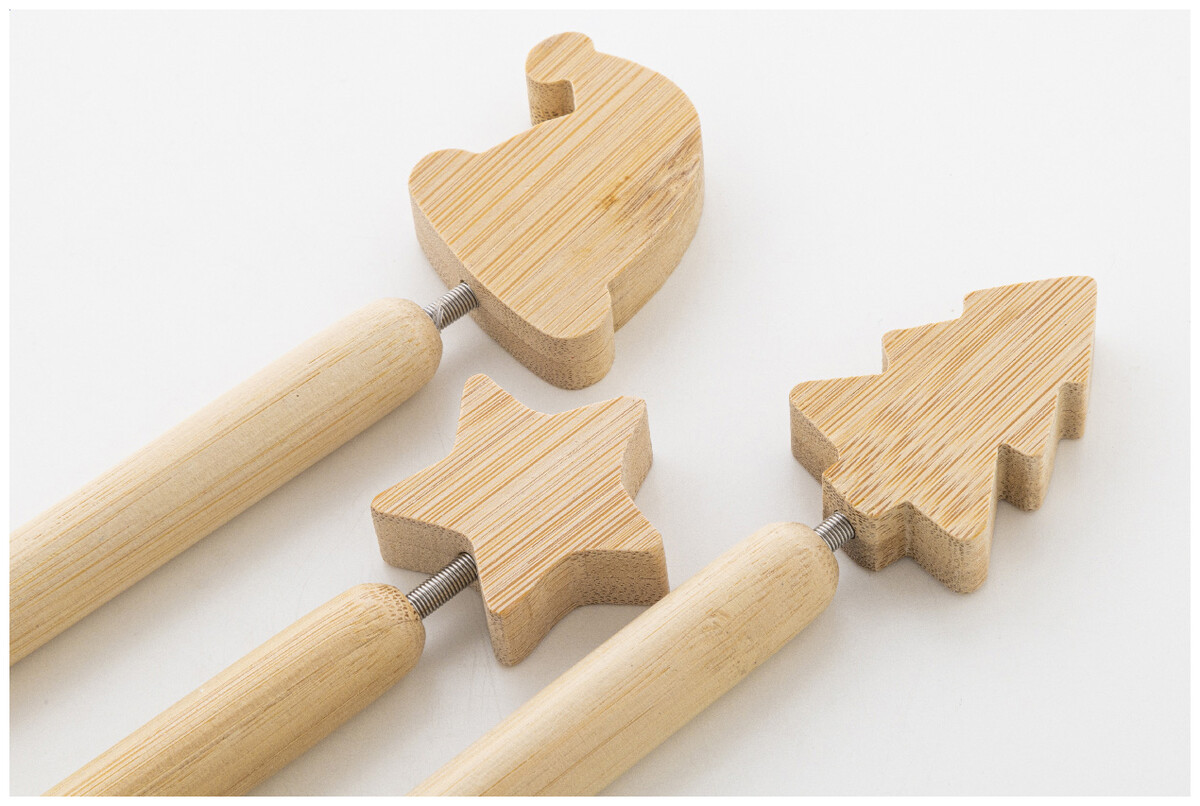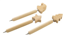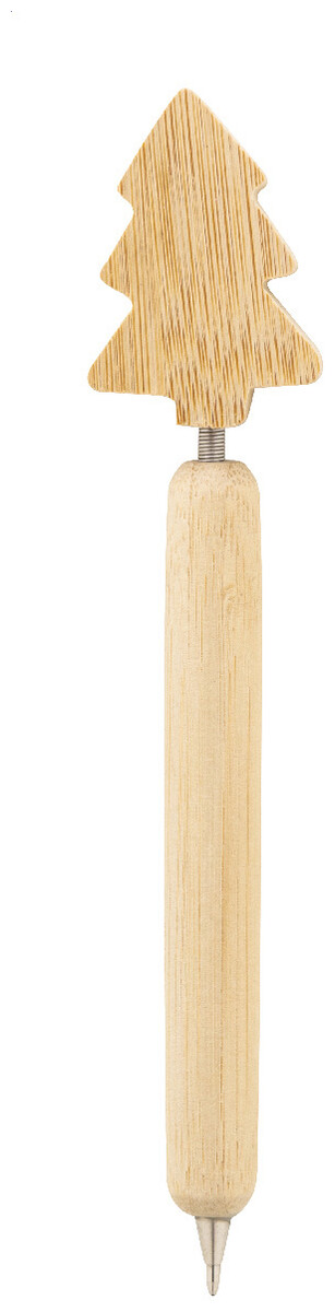 Bambusové kuličkové pero svánočním motivem nahoře. S modrou náplní.