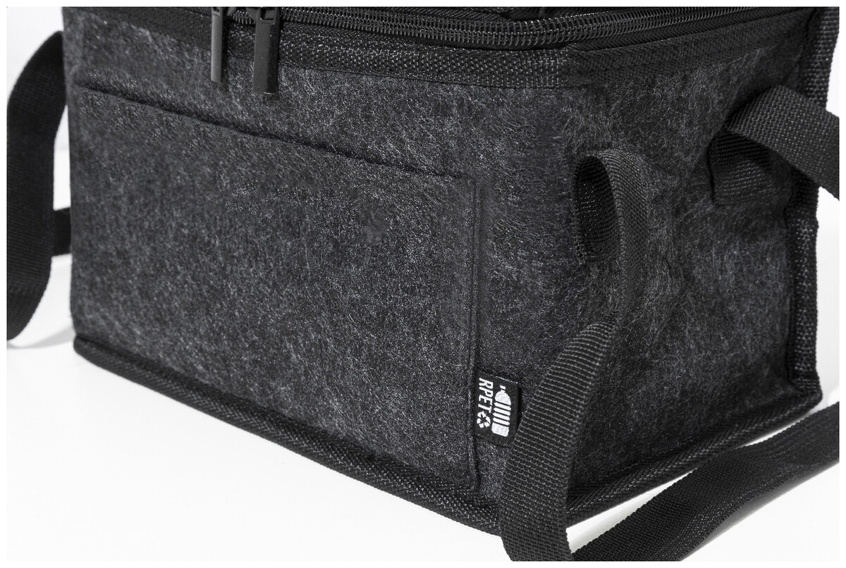 Chladicí taška na zip z RPET plsti s hliníkovým polstrováním, přední kapsou a bočními rukojeťmi. S výrazným štítkem RPET.