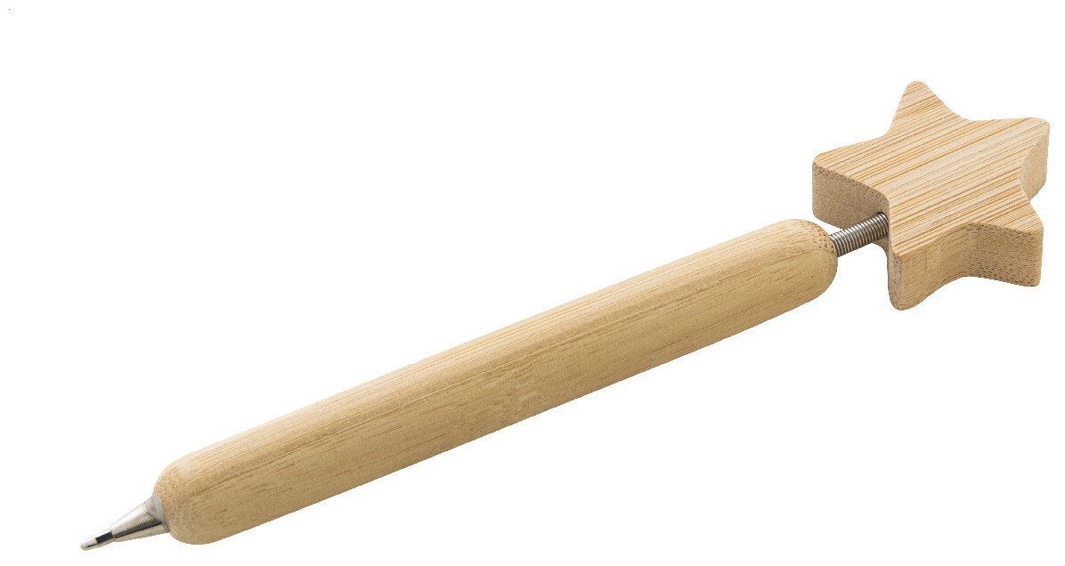 Bambusové kuličkové pero svánočním motivem nahoře. S modrou náplní.