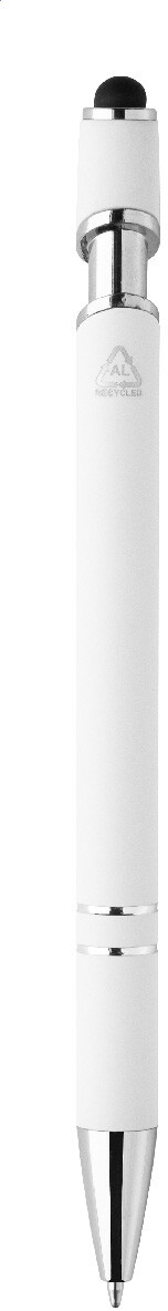Kuličkové pero a pero pro dotykovou obrazovku z recyklovaného hliníku s pogumovaným tělem a chromovanými detaily. S modrou náplní.