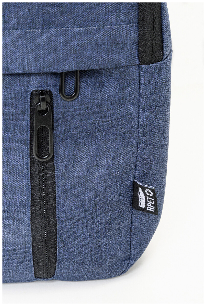 RPET batoh s hlavní přihrádkou na zip a 3 předními kapsami na zip. S polstrovanými přihrádkami na tablet (10") a notebook (15"), polstrovanými zády a ramenními popruhy. 600D RPET polyester s výrazným štítkem RPET.