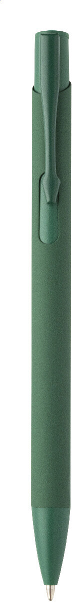 Kuličkové pero z recyklovaného hliníku s pogumovaným tělem a barevnými lesklými kovovými díly. Se speciálním povrchem pro zrcadlové gravírování, které odpovídá kovovým částem. S modrou náplní.