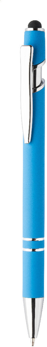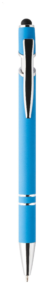 Kuličkové pero a pero pro dotykovou obrazovku z recyklovaného hliníku s pogumovaným tělem a chromovanými detaily. S modrou náplní.