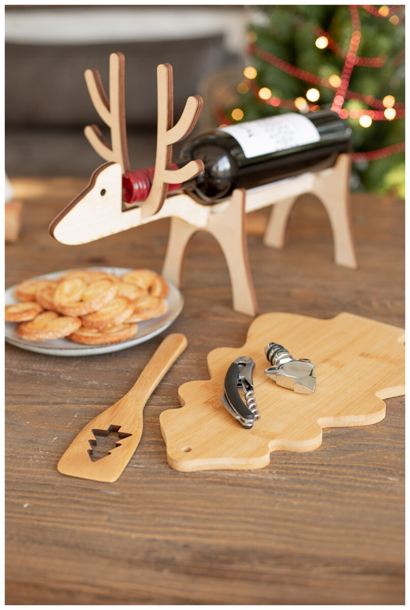 Vařečka z bambusu s vyřezaným vánočním stromečkem.