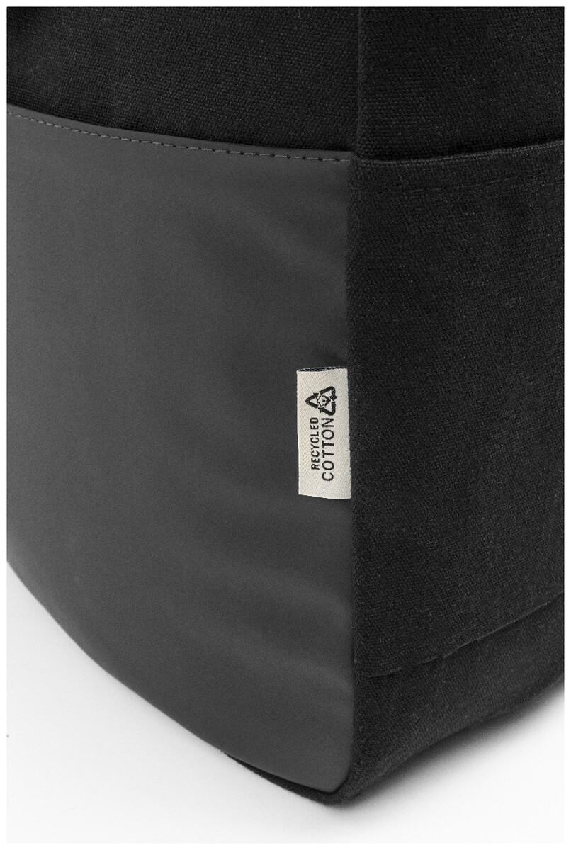 Rolovací batoh z recyklovaného plátna se zapínáním na přezku a přední kapsou na zip z měkké recyklované PU kůže. S polstrovanou přihrádkou na notebook (15"), bočními kapsami, polstrovanými zády a ramenními popruhy. 70% recyklované bavlny a 30% RPET polyesteru. S výrazným štítkem z recyklované bavlny.