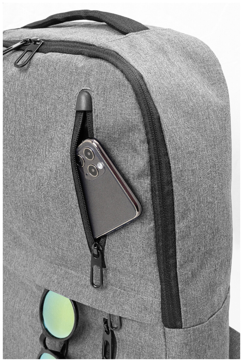 RPET batoh s hlavní přihrádkou na zip a 3 předními kapsami na zip. S polstrovanými přihrádkami na tablet (10") a notebook (15"), polstrovanými zády a ramenními popruhy. 600D RPET polyester s výrazným štítkem RPET.