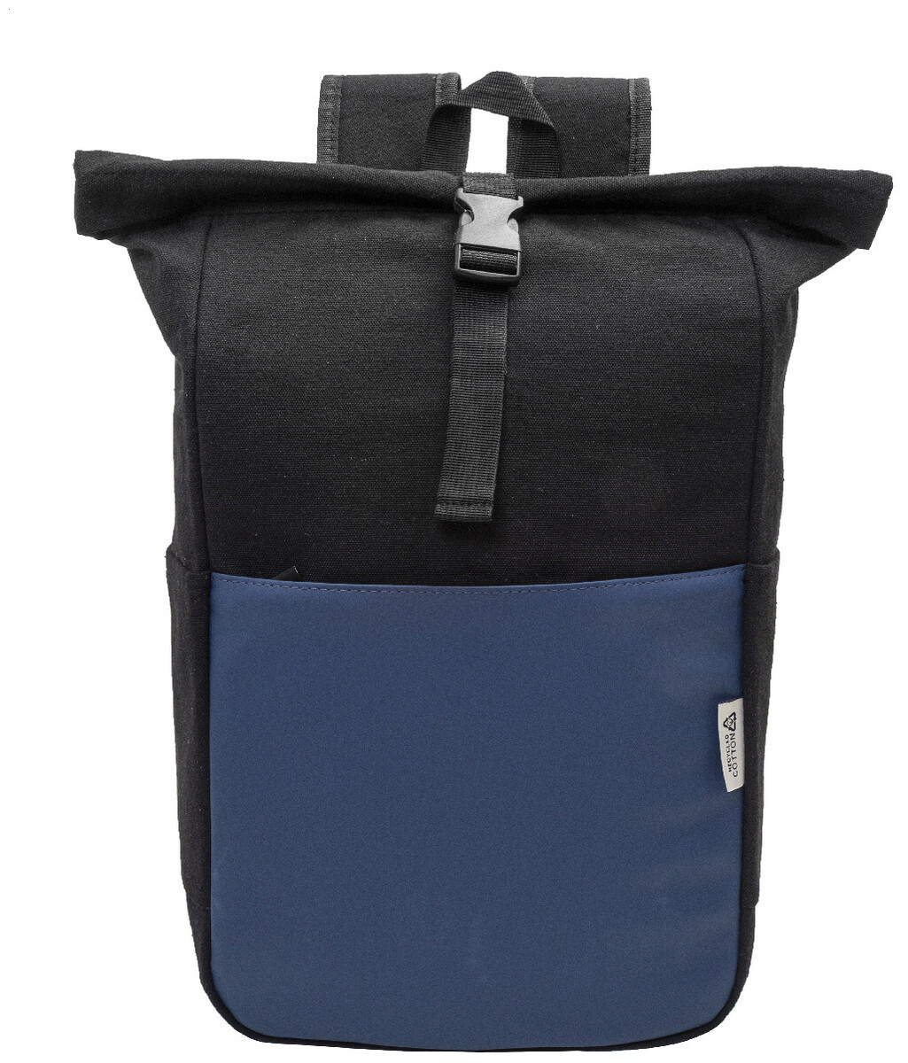 Rolovací batoh z recyklovaného plátna se zapínáním na přezku a přední kapsou na zip z měkké recyklované PU kůže. S polstrovanou přihrádkou na notebook (15"), bočními kapsami, polstrovanými zády a ramenními popruhy. 70% recyklované bavlny a 30% RPET polyesteru. S výrazným štítkem z recyklované bavlny.