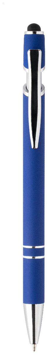 Kuličkové pero a pero pro dotykovou obrazovku z recyklovaného hliníku s pogumovaným tělem a chromovanými detaily. S modrou náplní.