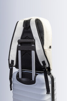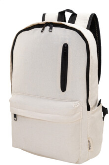 Recyklovaný plátěný batoh s hlavní přihrádkou na zip, polstrovanou přihrádkou na notebook (15"), 2 předními kapsami na zip, bočními kapsami, popruhem na kolečkách, polstrovanými zády a ramenními popruhy. 70% recyklované bavlny a 30% RPET polyesteru. S výrazným štítkem recyklované bavlny.