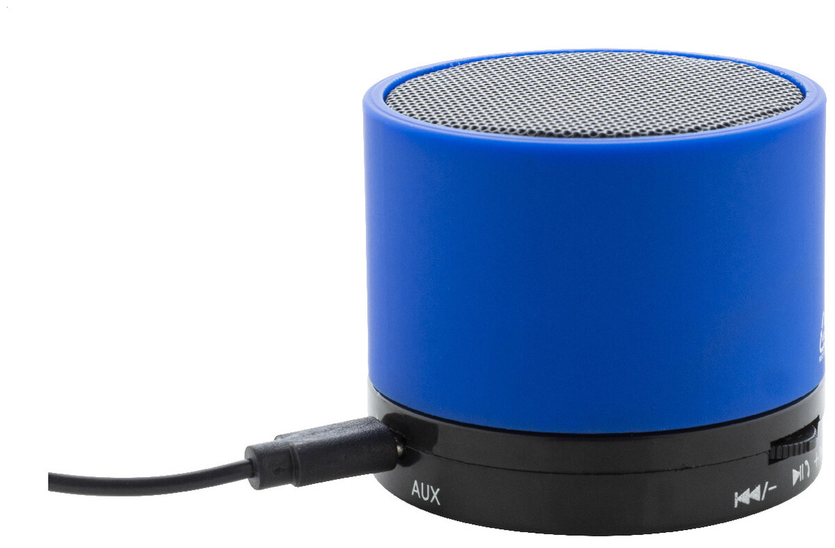 Bezdrátový reproduktor z recyklovaného ABS v pogumovaném pouzdře s kovovou síťovinou a dobíjecí baterií (300 mAh). S funkcí handsfree hovorů a přehrávání MP3 z micro SD karty. Včetně nabíjecího kabelu USB.
