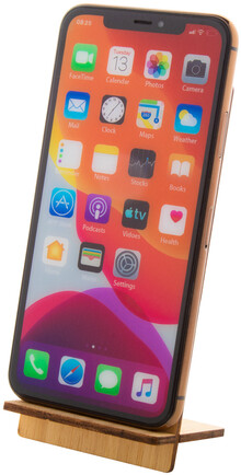 Stojánek na mobil z bambusové překližky s vyřízlým vánočním motivem. Dodáváno rozložené.