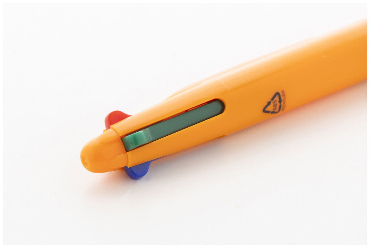 Vícebarevné kuličkové pero z recyklovaného ABS materiálu s gumovým úchopem. S černou, modrou, červenou a zelenou náplní.