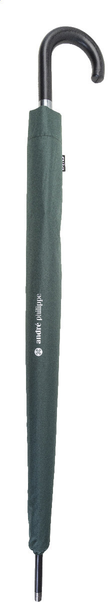 Velký automatický deštník odolný proti větru s 16 panely, rukojetí z PU kůže, kovovým rámem a žebry ze skelných vláken. 190T RPET ponge. S výrazným štítkem RPET. Ve značkovém přenosném pouzdře. Výrobek značky André Philippe.