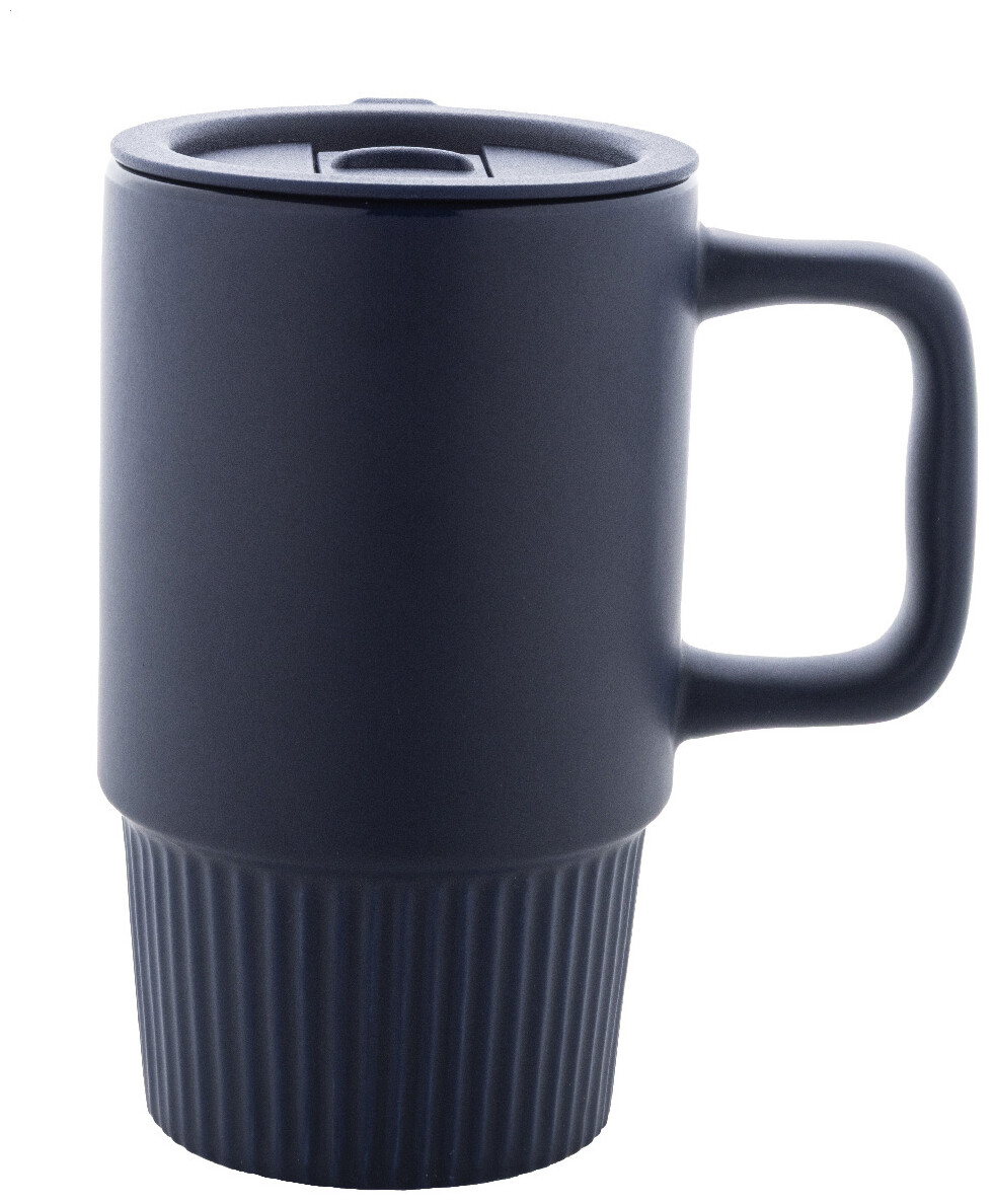 Vysoce kvalitní keramický cestovní hrnek s matným vnějším povrchem a plastovým víčkem z polypropylenu. 420 ml.