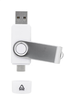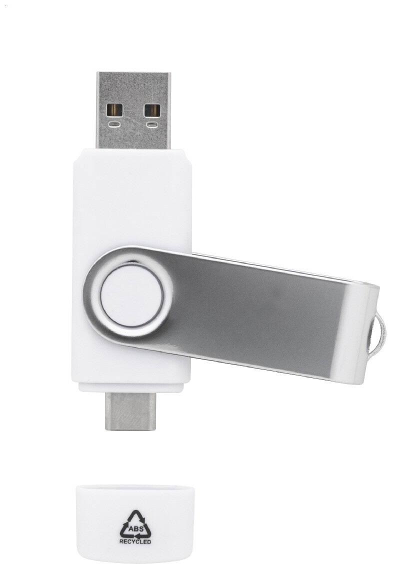 Otočný USB flash disk OTG v pouzdře z recyklovaného ABS a kovu s pamětí 8/16/32 GB. S připojeními USB a USB-C. USB 2.0.