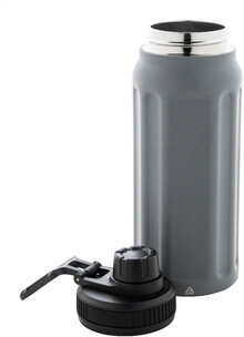 Dvoustěnná termoska z recyklované nerezové oceli s vertikálními drážkami. S víčkem z polypropylenu a s integrovaným držadlem. 540 ml.