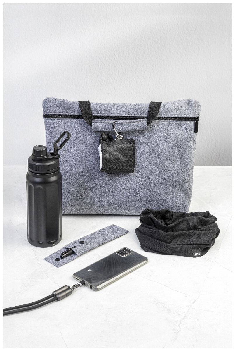 Dvoustěnná termoska z recyklované nerezové oceli s vertikálními drážkami. S víčkem z polypropylenu a s integrovaným držadlem. 540 ml.