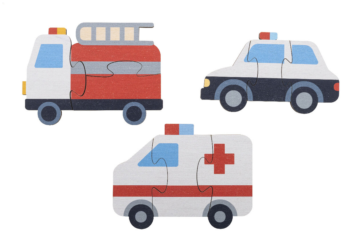 Dětská sada puzzle z březové překližky se 3 tematickými motivy. V bavlněném přepravním pytlíku.