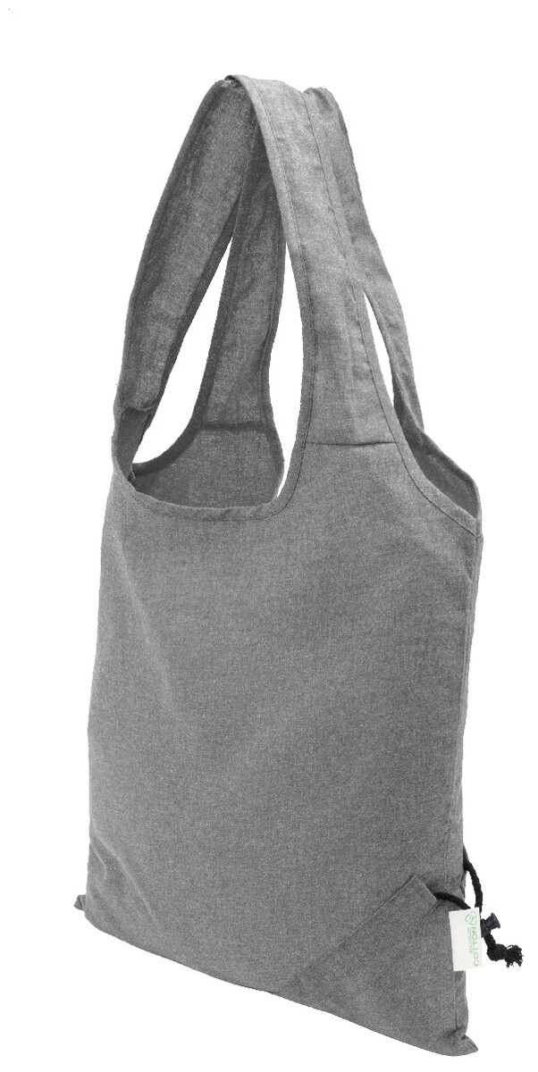 Skládací nákupní taška ze 70 % recyklované bavlny a 30 % polyesteru RPET, 140 g/m2. S výrazným štítkem z recyklované bavlny.