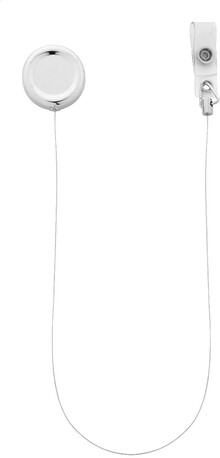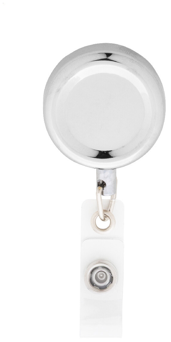 Exkluzivní kovový držák na ski pass s vysoce lesklou metalickou povrchovou úpravou. Zapínání na druk, teleskopická šňůra a kovová spona.