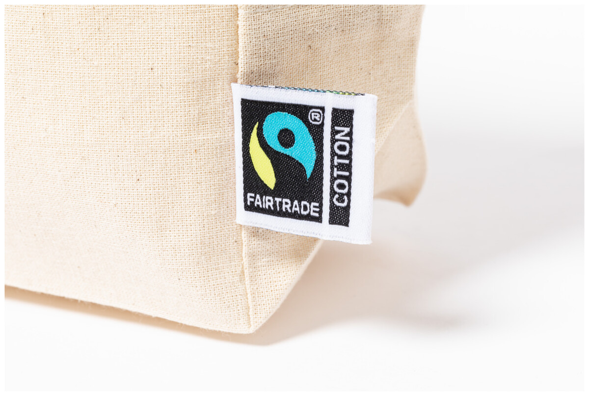 Fairtrade bavlněná kosmetická taštička na zip s výraznou Fairtrade etiketou. 100% Fairtrade bavlna, 180 g/m2.