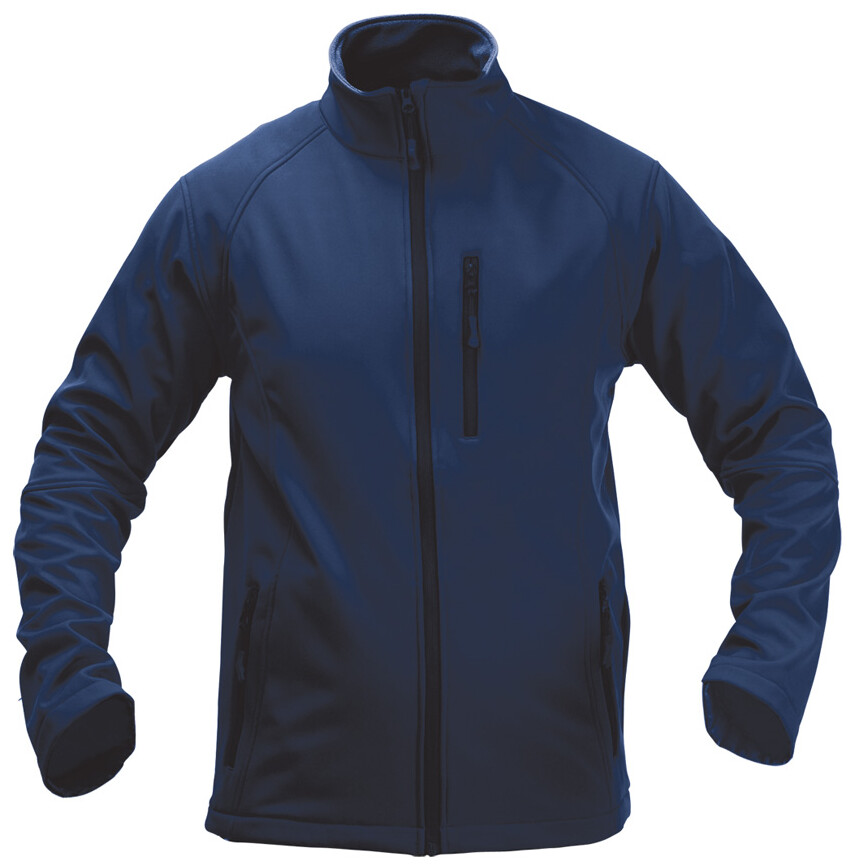 Softshellová bunda na zip, 94% polyester / 6% elastan se 3 kapsami. Prodyšná a voděodolná, 300 g/m2.