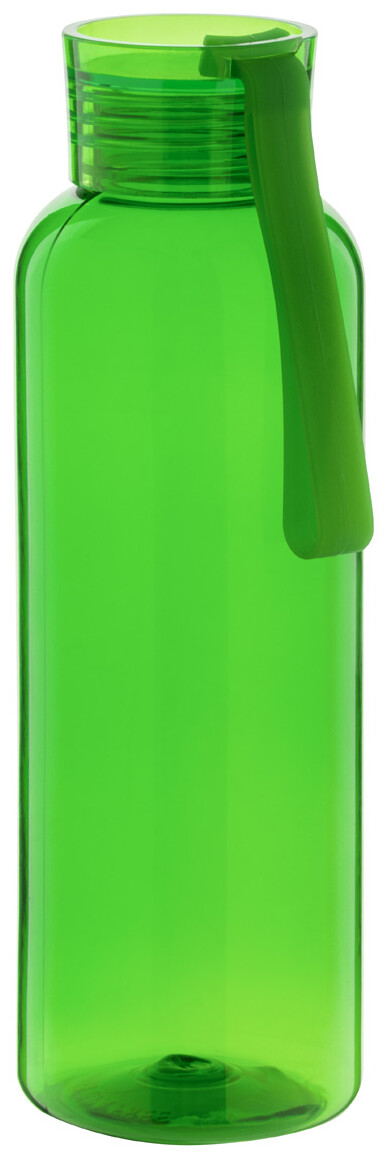 Láhev RPET s víčkem v odpovídající barvě a silikonovým popruhem, 500 ml. Nevhodné pro sycené nápoje.