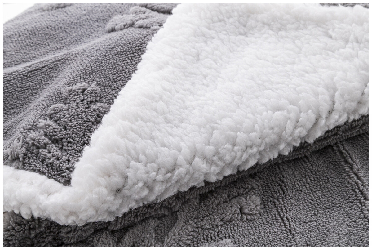 Luxusní dvouvrstvá vánoční deka z RPET s žakárovým vzorem sněhových vloček. S korálovým fleecovým materiálem RPET 260 g/m2 a oboustrannou podšívkou z RPET sherpa fleecu 210 g/m2. Zabaleno do stuhy a tisknutelného papírového kartonu.