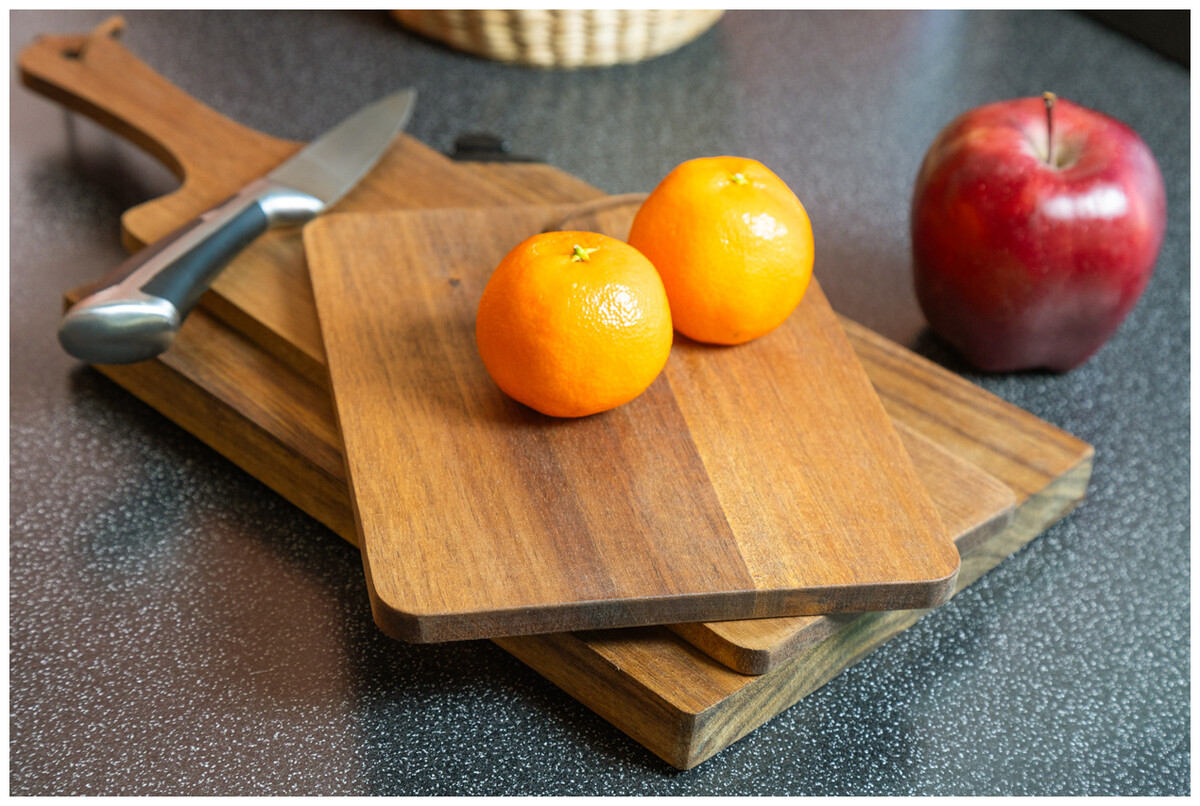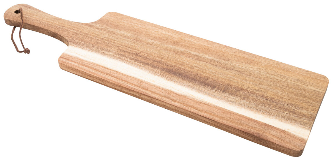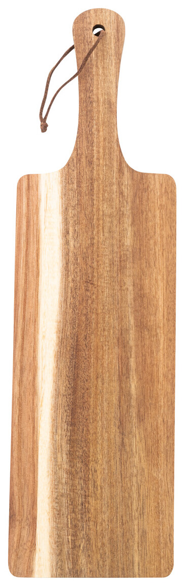 Krájecí a servírovací prkénko z akátového dřeva s rukojetí a šňůrkou z PU kůže.