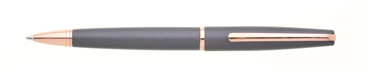 kovová propiska v dárkové krabičce s průhledným okénkem.