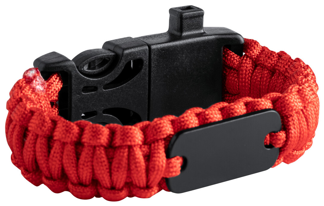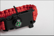 Multifunkční náramek na přežití z padákového nylonu s kompasem, píšťalkou a křesacím kamínkem na zapálení ohně.