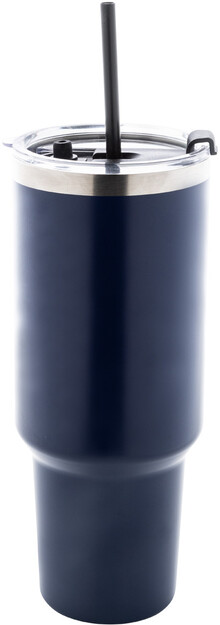 Dvouplášťový vakuově izolovaný termo hrnek z recyklované nerezové oceli s PS víčkem na pití a PP brčkem. 1200 ml.