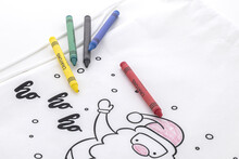 Vánoční vak na vybarvování se stahovací šňůrkou z netkané RPET tkaniny s 5 voskovkami.