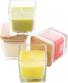 Vosková svíčka na rostlinné bázi ve skleněném držáku s bambusovým víčkem. S 50 gramy vosku. Doba hoření: 8 hodin. V kraftové papírové krabici.