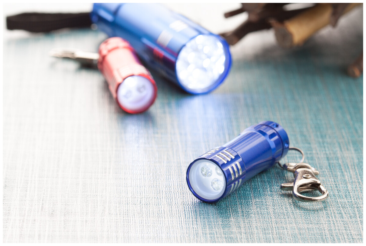 Mini hliníková baterka s 3mi LED diodami a karabinkou. Dodáváno s baterií.