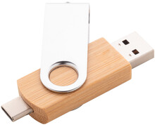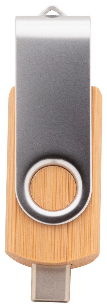 USB flash disk Twist OTG v bambusovém a kovovém pouzdře s pamětí 8/16/32 GB. S připojením USB a USB-C. V kraftové papírové krabici. USB 2.0.