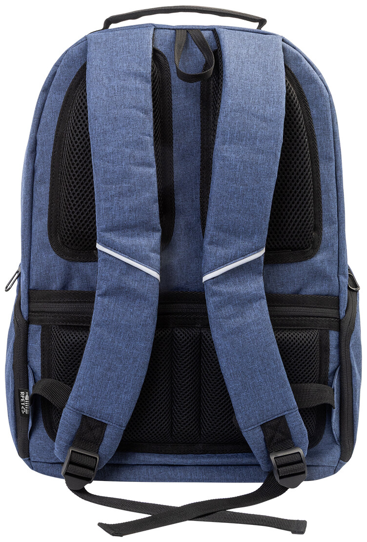 Batoh z RPET s přihrádkami na zip, 2 předními kapsami na zip, bočními kapsami na zip a polstrovanou přihrádkou na notebook (15"). S polstrovanými zády a ramenními popruhy, kapsou s ochranou proti krádeži a popruhem na kufr. Z polyesteru 300D RPET s výrazným štítkem RPET.
