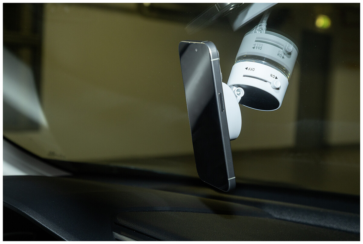 Magnetický držák na mobil do auta z recyklovaného ABS materiálu s přísavkou. Včetně samolepicího kovového kroužku pro telefony bez magnetického povrchu.