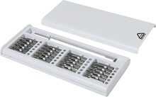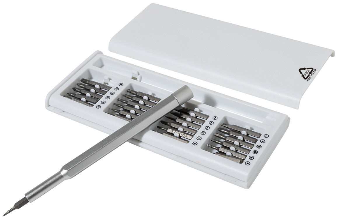 Sada přesných šroubováků s 24 bity v pouzdře z recyklovaného ABS plastu. Rukojeť šroubováku je vybavena magnetickým uchycením bitů pro rychlou a bezpečnou výměnu bitů.