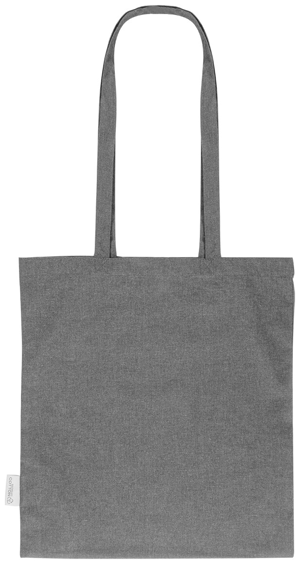 Nákupní taška s dlouhými uchy ze 70 % recyklované bavlny a 30 % RPET polyesteru, 140 g/m2. S výraznou etiketou o recyklované bavlně.