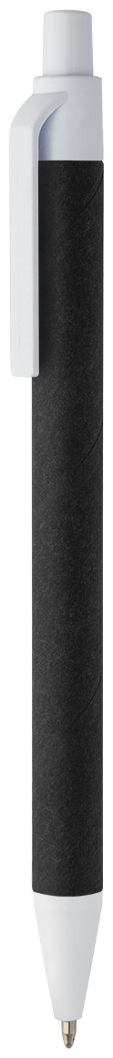 Kuličkové pero z recyklovaného papíru s černým tělem a recyklovanými ABS díly. S modrou náplní.