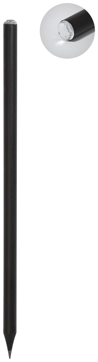 Černá dřevěná tužka s akrylovým ozdobnými kamínky. Ořezaná, třída HB.