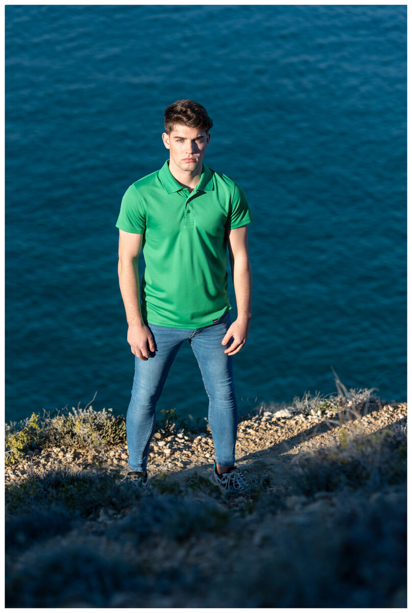 100% RPET polyester, prodyšná polokošile se třemi knoflíky na krku ve stejné barvě. 180 g/m2. S výrazným štítkem RPET.