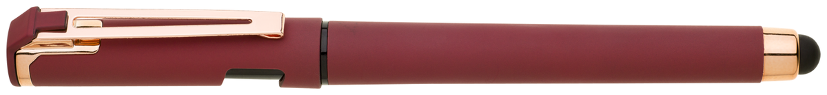 Elegantní gelové pero ROSEO SOFT GEL se soft povrchem, touch koncovkou a doplňky v růžovo-zlaté barvě. Pero má gelovou velkoobsahovou náplň, která píše modře.