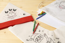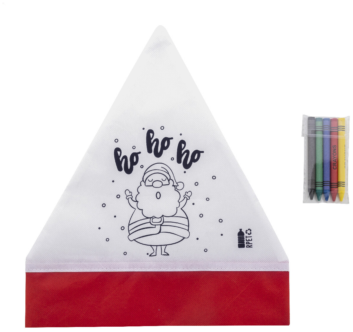 Vánoční čepice Santy z netkané RPET tkaniny na vybarvování s 5 voskovkami.