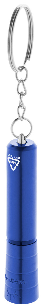 Mini baterka s 1 LED, z recyklovaného ABS plastu s kovovým povrchem a kovovým kroužkem na klíče. S knoflíkovou baterií.