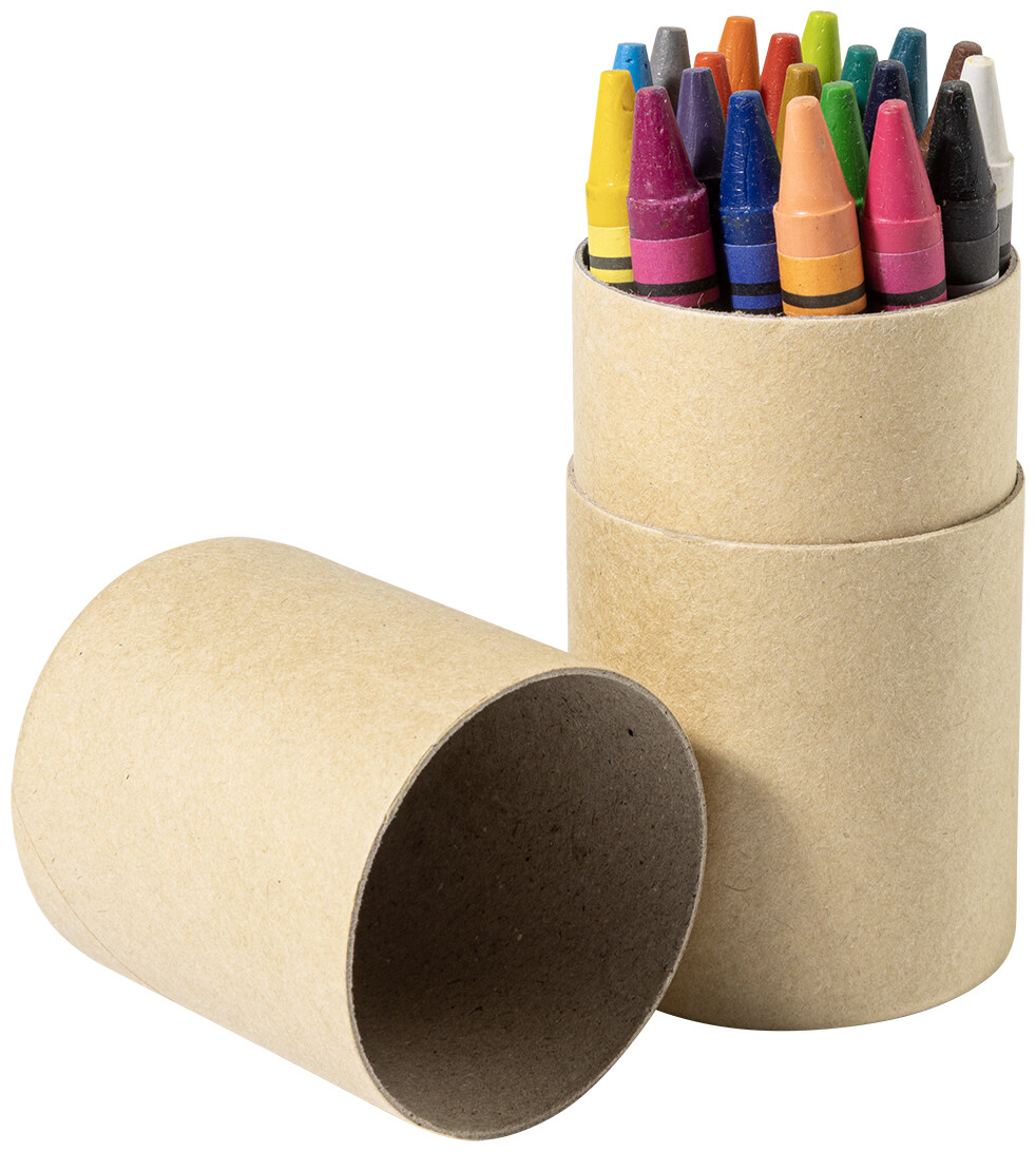 Sada 20 barevných voskovek v tubě z recyklovaného papíru.