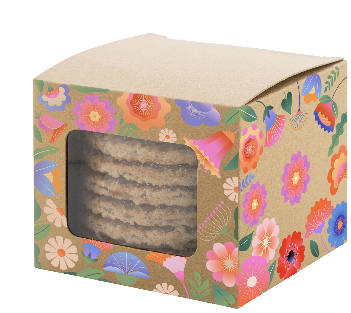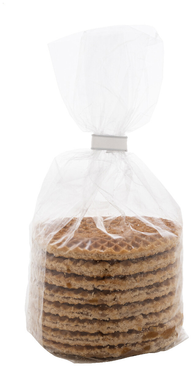 Pravé holandské stroopwafels (dva tenké plátky vafle plněné krémovým karamelovým sirupem) balené v plastovém sáčku. 8 kusů, 250 gramů. Lze přizpůsobit vinylovou samolepkou nebo plnobarevně potištěnou papírovou dárkovou krabičkou. Cena nezahrnuje tisk.