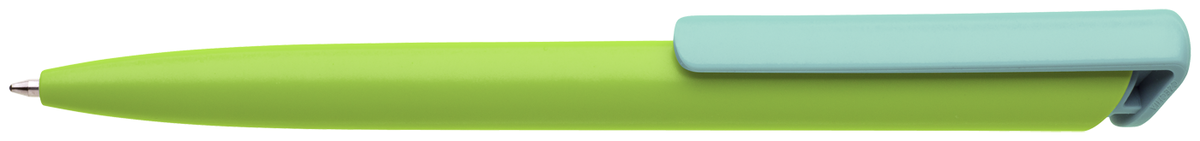 Česká propiska BOIA v minimalistickém designu světle zeleného oválného těla s dynamickým tvarem zeleného foamo masivního klipu. Tělo i klip nabízí velký prostor pro značení logem zákazníka. Materiál plast, náplň velkoobsahová, modře píšící. BOIA je vyráběna v České republice.