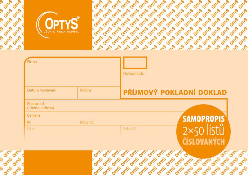 PŘÍJMOVÝ POKLADNÍ DOKLAD OPTYS samopropisovací A6/2x50